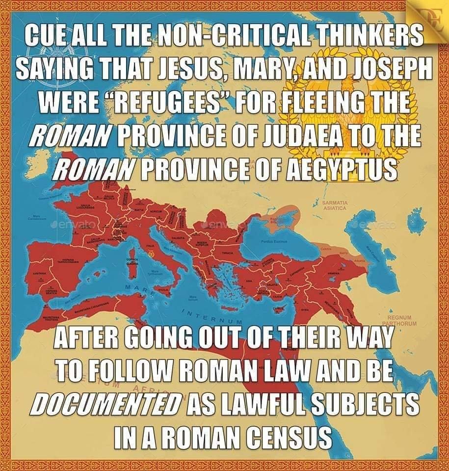 Fifth, from Nazareth to Bethlehem, to Egypt, and back to Nazareth, Jesus, Joseph, and Mary never left the Roman Empire.
